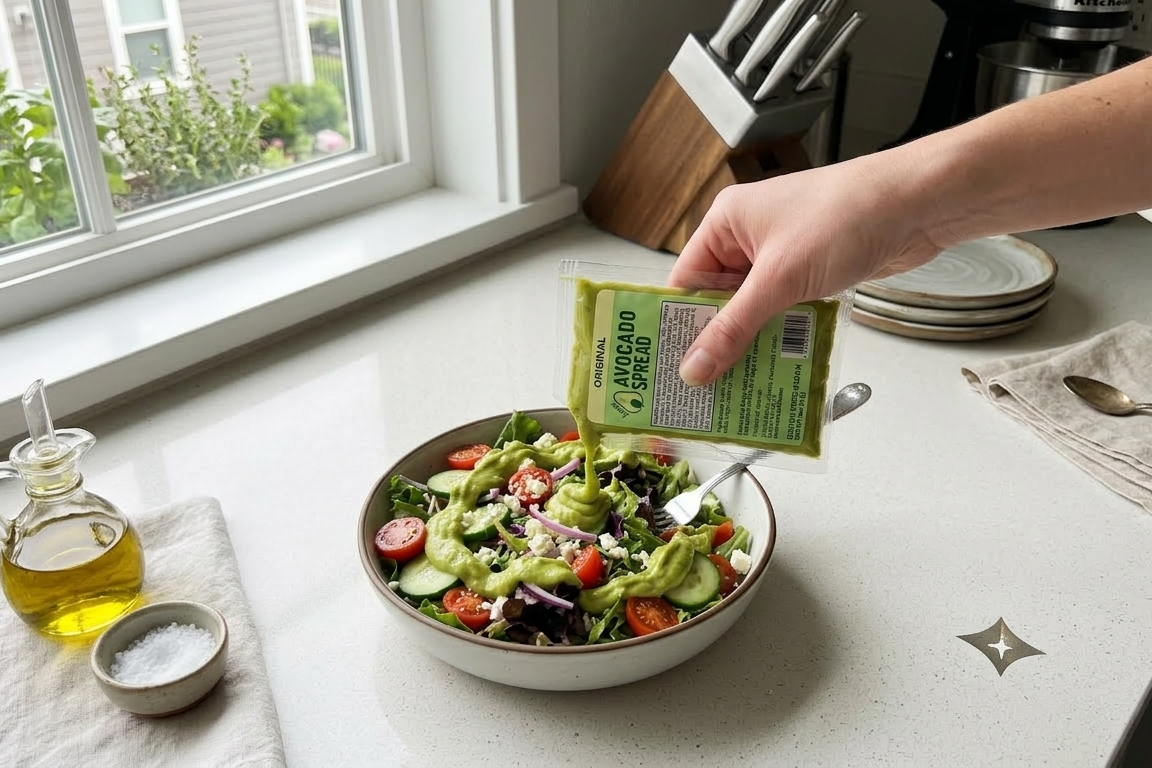 The ingredients in our Aveyo Original Spread are as simple as it gets with a rich creamy texture and a taste that is tangy and refreshing. Made with over 80% fresh hand scooped Hass Avocado our Original Spread makes any dish taste better and makes it better for you. Because avocados are the main ingredient and not oil it is also 75% less fat and calories than traditional oil based mayos and spreads. The convenient 2oz pouch makes it easy to spread on all of your favorite dishes. Get ready to spread it!